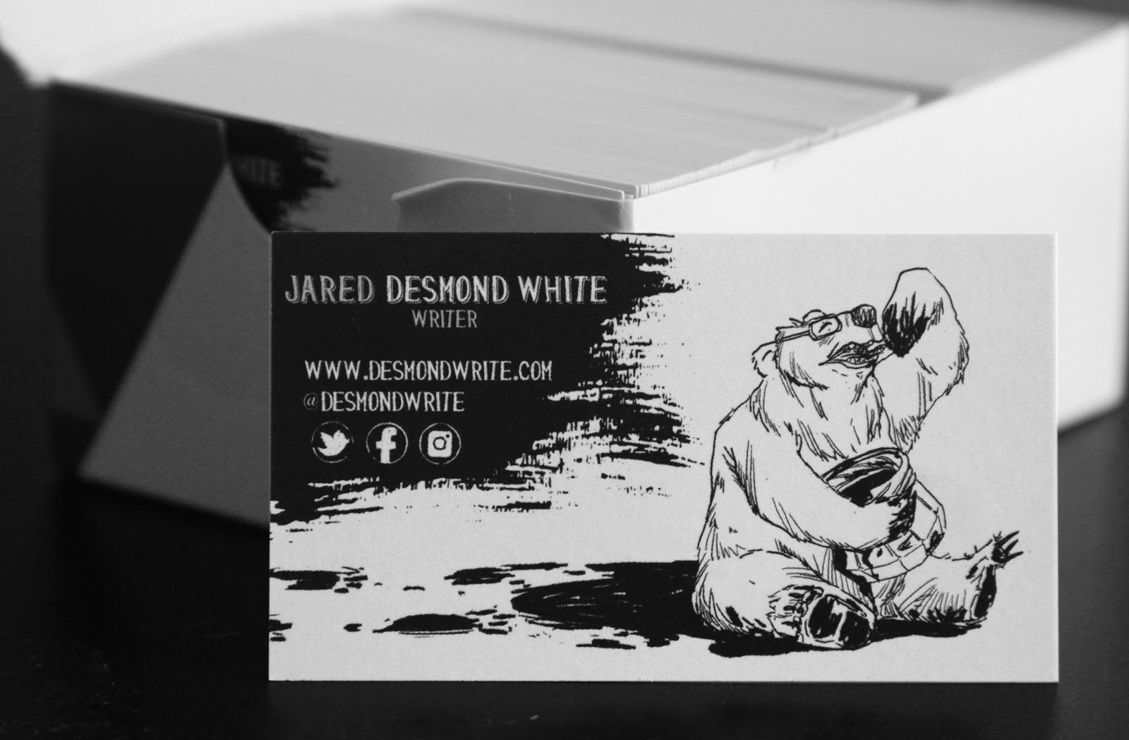 I commissioned my friend Phil Kiner (check out his Behance, Twitter, and Instagram) to make an official business card for Desmond, Write.