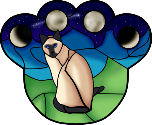 The cathedral is devoted to cats. I’ve had an artist recreate the stained glass in the foyer.