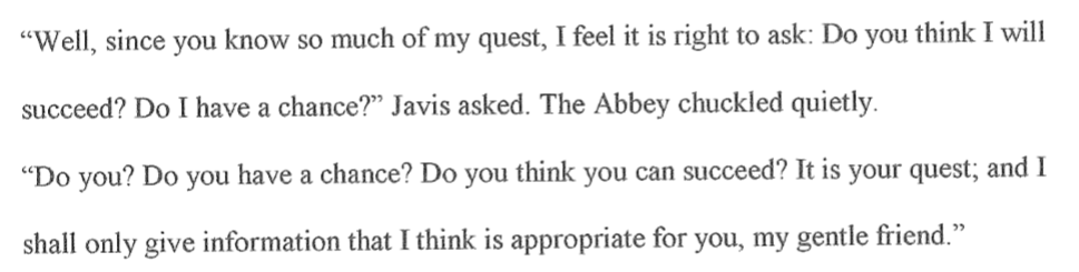 The Abbey offers to answer any of Javis’s questions, and then doesn’t.