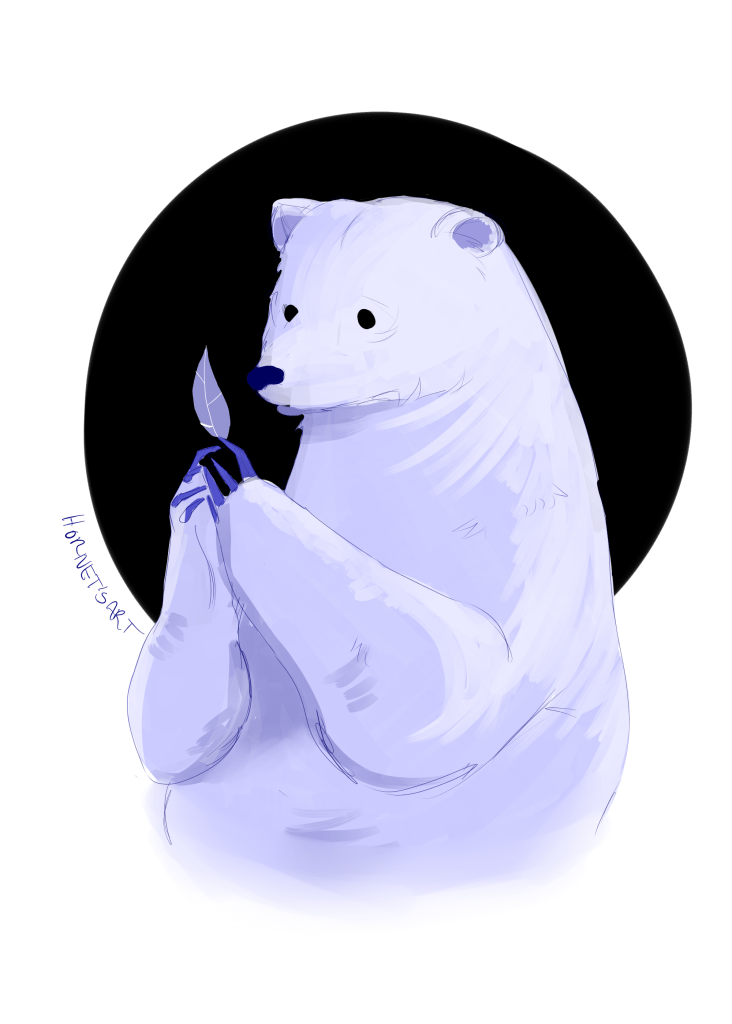 The second image is of a bear spying on himself in a sword blade. This was created for T. J. Locustwood’s “The Recruitment of Steel.” The piece is a cantos that pairs with his upcoming book, Alexander Croft and the Corvian Wrath.
