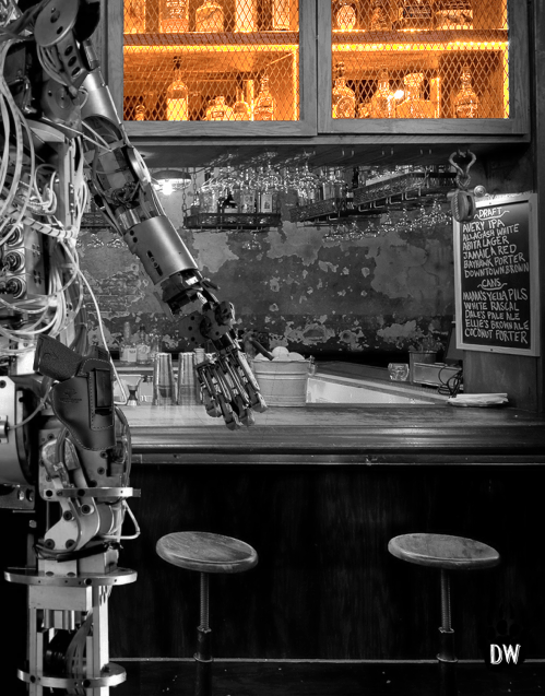 The android was making them all uncomfortable with its Zelzer Stiff eyeing them from its hip. It’d only been forty point three seconds since the landmark decision to include artificial humans in the Second Amendment and this son of a manufacturing plant had just walked into the Rig & Rattle with a laspistol holstered, twinkling. Kghoshi—a real bastard on a good day—splashed his drink on silver chestmetal and said, “You packing, tin can?” The bartender—a saint on a bad day—put an arm on the droid: “C’mon, now, let’s not do this.” The move was registered as an offensive action and the android shot the bartender between his eyebrows. Kghoshi’s finger moved a centimeter toward his gun when a second shot put a red dot on his forehead. The men in the bar leaped to their feet. Offensive actions. The men in the bar toppled over chairs and tables. By the time the android reached the counter, empty now of breathing souls, a feed of reaction times, facial registers, psycho-prints—all pointing to self-defense—had been submitted to the authorities.