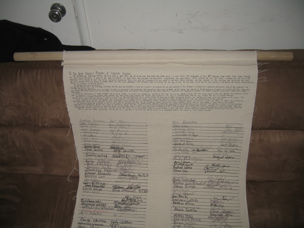 Us groundlings have been waiting. We go to class in good faith; we sit on the lawn and watch the trees grow – in good faith. We sit on the OLT benches, burning cigarettes, compose. We wield plastic hammers at the gods of poetry – in good faith. We’re waiting for the CCS trees to scrape the sky, but in the meantime, we’ve learned to read–and we’ve cultivated intellectual fleas that quiz us incessantly as we bathe in the dust. We’ve watched our rags unravel in the scorched late afternoon sun – until now, this moment, when the prayers we never knew we had were answered. All this time we’ve had our ears pressed to the ground, and finally, we heard the news: